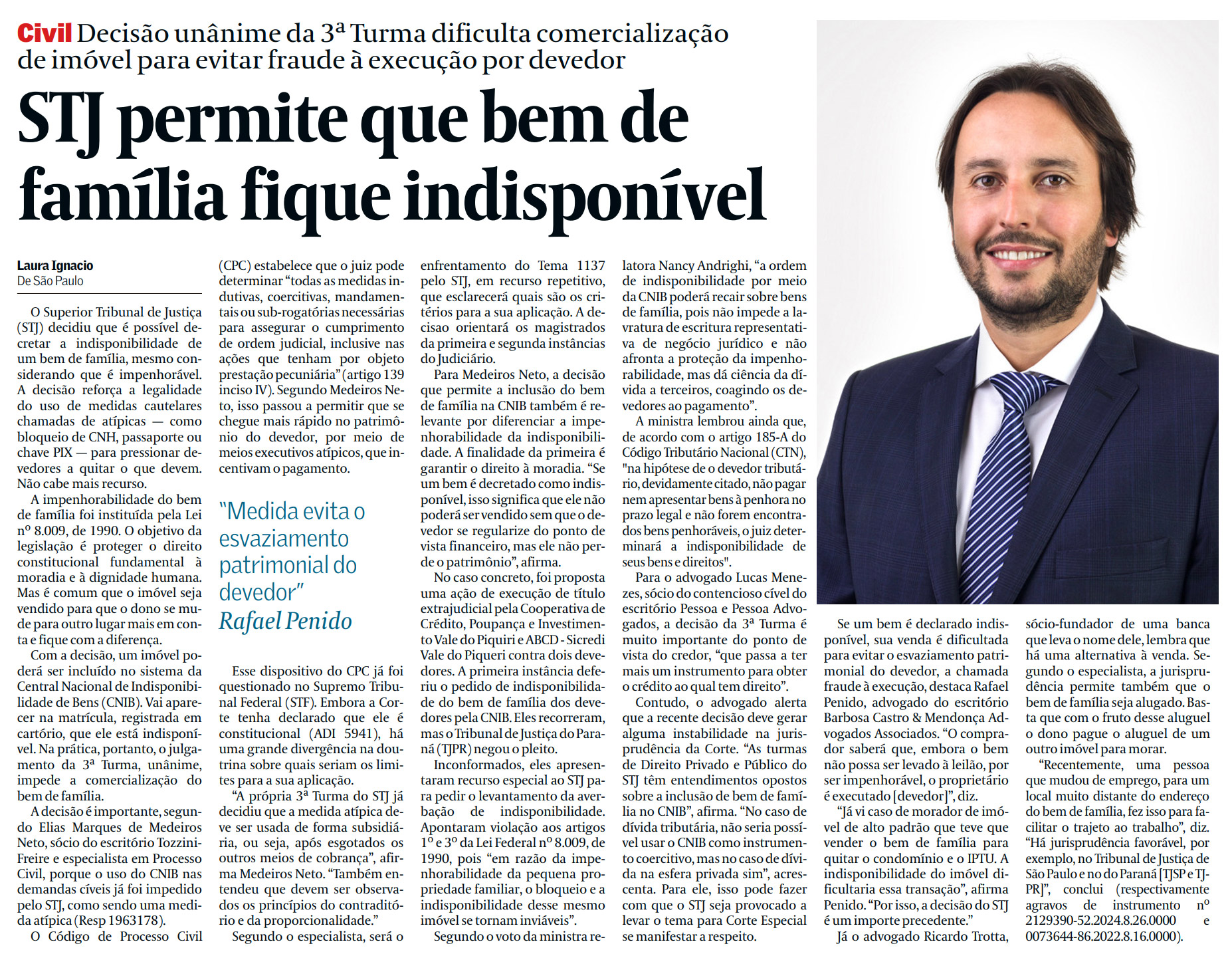 Se um bem é declarado indisponível, sua venda é dificultada para evitar o esvaziamento patrimonial do devedor, a chamada fraude à execução, destaca Dr. Rafael Penido, sócio do escritório Barbosa Castro & Mendonça Advogados Associados.